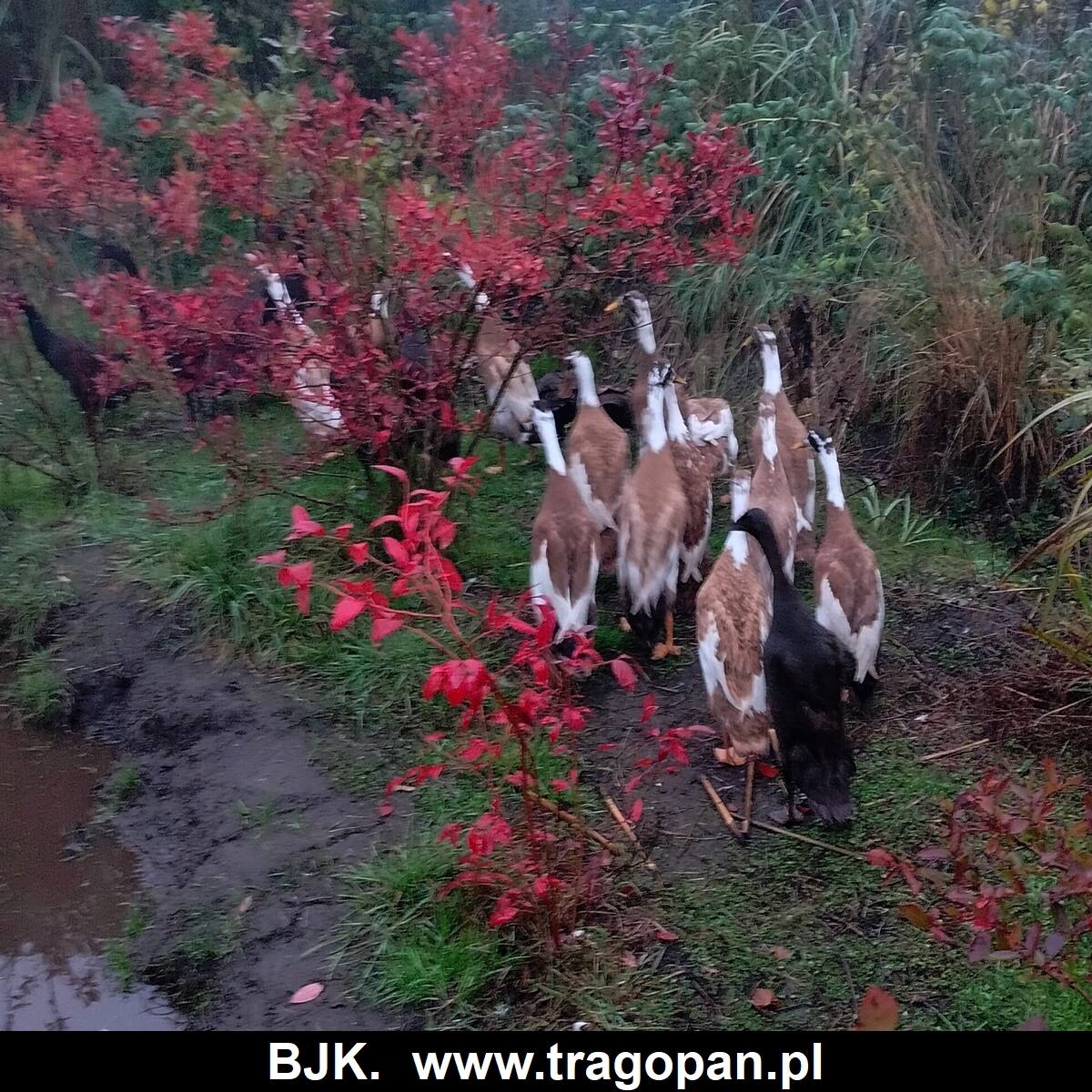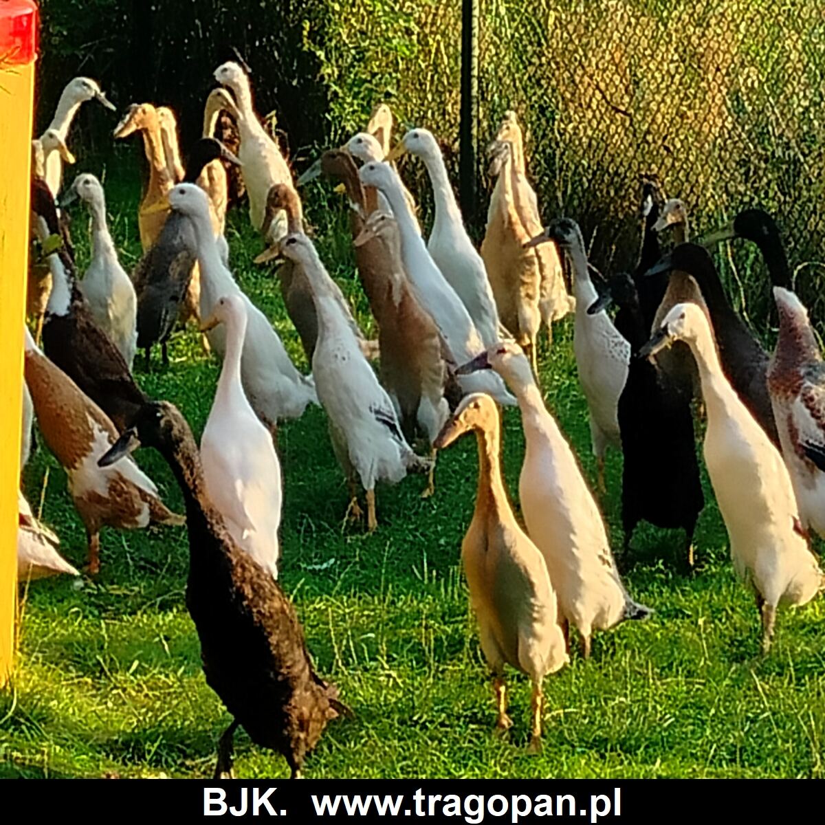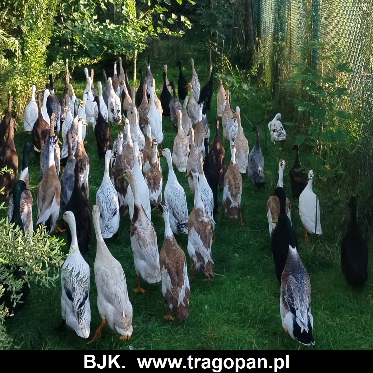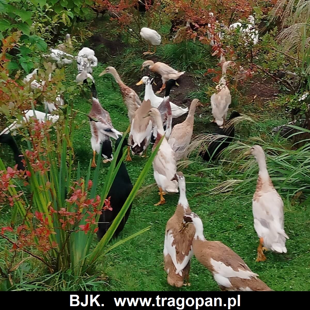 W naszej hodowli mamy oryginalne kaczki biegusy. Kaczki były sprowadzone od najlepszych hodowców biegusów indyjskich, z Europy. Posiadamy bardzo dużą gamę czystych kolorów; szmaragdowy, biały, niebieski, morelowy, żółty, srebrny, dziki, czekoladowe, sarnie, łaciate. W ofercie sprzedaży mamy jaja lęgowe, młode kaczki i dorosłe. Więcej informacji można uzyskać pod numerem telefonu 609956412, lub info@tragopan.pl